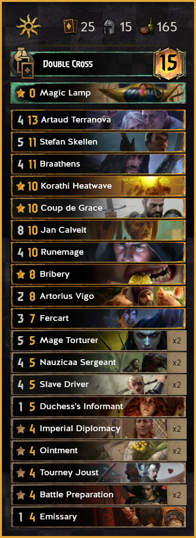 From red coin just abuse, you have a deck built the way that you can easily play all 10 cards in round one. This deck has lots of steam. Obviously, this doesn’t mean that you are supposed to play all 10 cards round one each game, some cards are just kinda bad to be played round one like Ramon, Braathens or Triss.