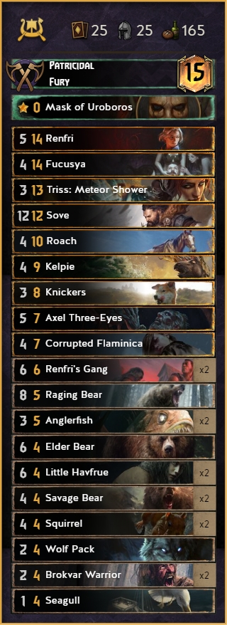 Renfri is still keeping her place in the meta, might not be the strongest right now but definitely she is not the weakest. Crush the enemies in a long round with Triss: Meteor Shower, or just keep some steam for round 3 and win either with Renfri or Ramon and Nauzicaa Sergeants.