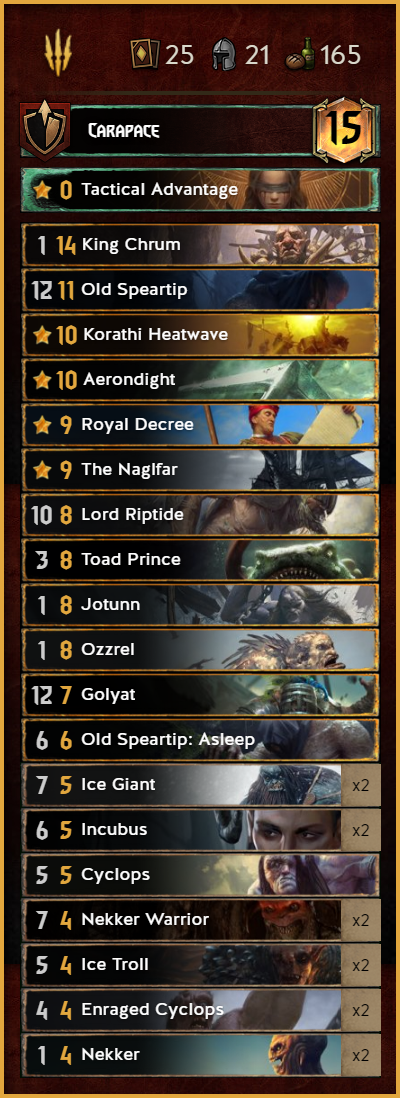 Already known on the ladder for many seasons, the disgusting deck based on consuming your own units is once again in our snapshot. The list characterized by the creation of own points in a short time has been enriched with several changes and adapted to rivals. Thanks to Aguara, we are able to eliminate the rival’s engine and Lord Riptide will effectively deal with another threat from the opponent. There’s nothing left for you, wretch, to take this list and savor it…